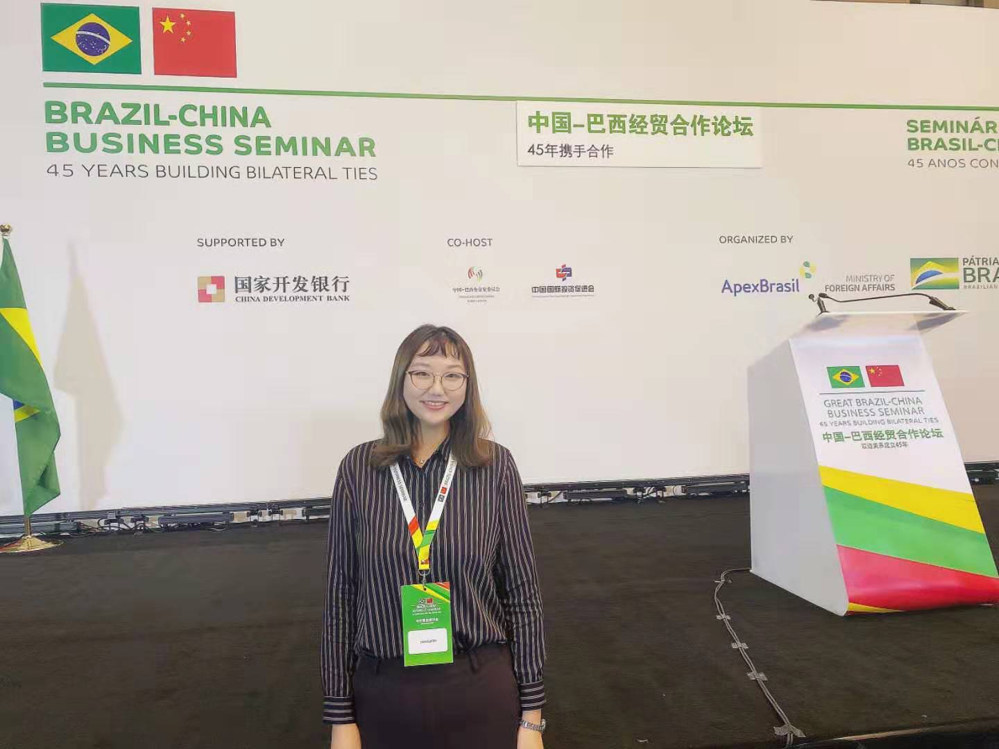 张方方老师负责总统访华期间的部分交传和同传工作,包括24号下午游览长城、24号晚圣保罗州工业联合会组织的总统与中国企业代表会谈、25号中巴企业论坛总统讲话、会后与中资企业见面会以及其他私人行程。